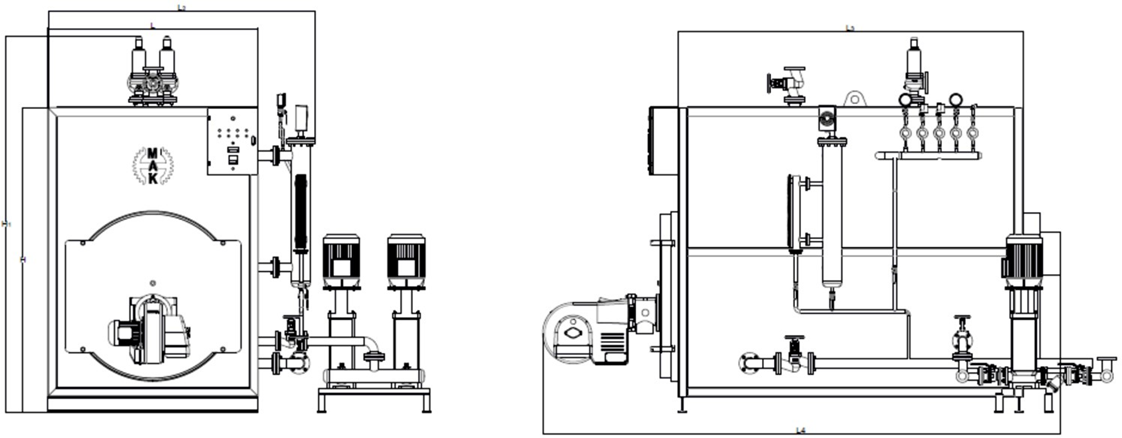 It is an integrated system with the burner, feed water pump, water treatment unit, condensate tank and electrical panel.
